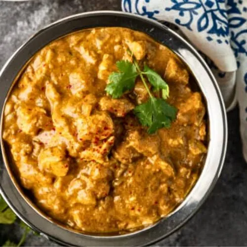 a creamy, spiced curry with tender pieces of mutton and very tasty.