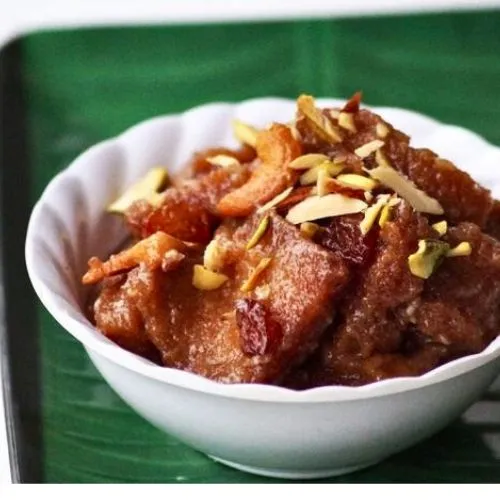 a delightful Indian sweet made with a mix of nuts and dried fruits, bound together with ghee and sweetened with sugar.