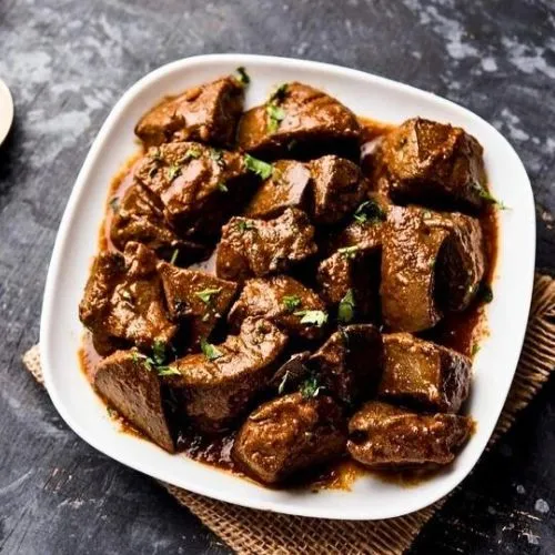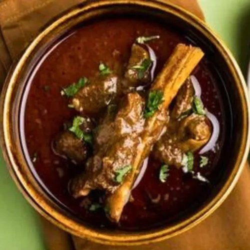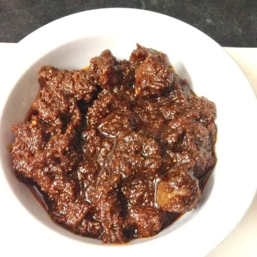a tangy and spicy Indian pickle made with marinated meat, offering a robust flavor that enhances any meal and flavorful taste.