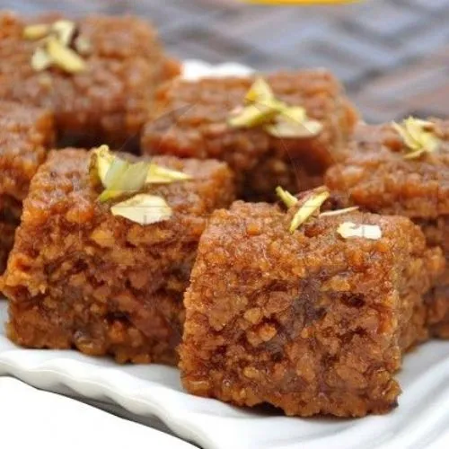 a nutritious Indian sweet made from edible gum, whole wheat flour, ghee, and sugar, known for its rich, aromatic flavor.