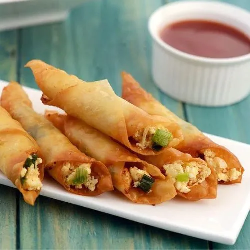 a crispy, rolled pastry filled with a savory mix of spiced vegetables and good tasty.
